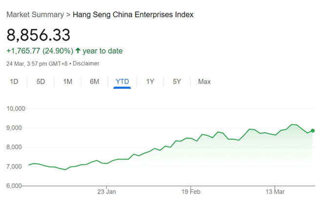 得益于此,恒生中国企业指数和MSCI中国指数均较1月中旬的低点飙升逾20%。