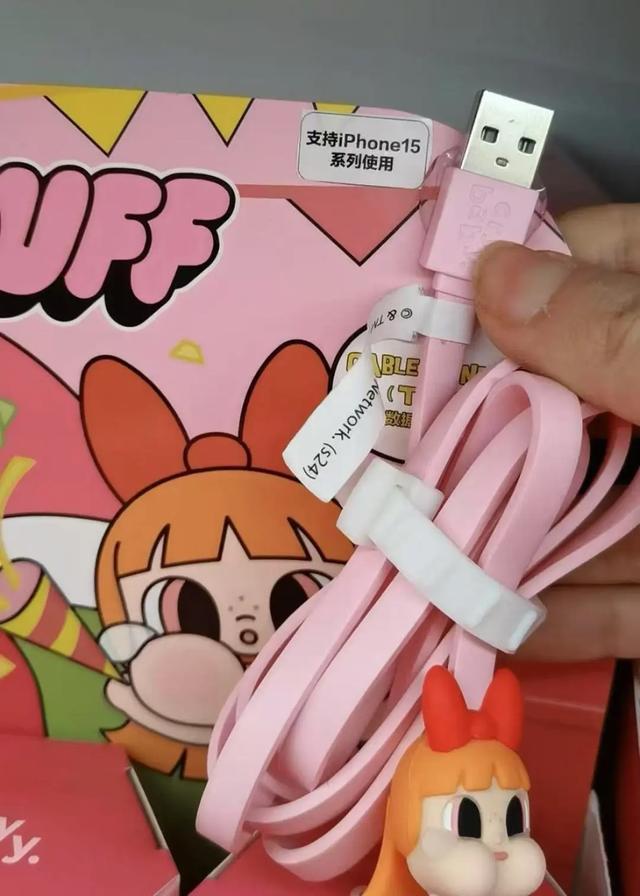 不过,记者看到,在多家泡泡玛特线下门店,该产品的售卖区域显著位置均贴有“支持iPhone 15系列使用”标识,店员与线上客服也均表示该数据线与iPhone 15系列适配。