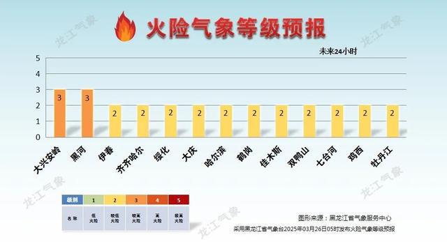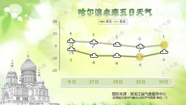 26日夜间最低气温:大兴安岭北部-20~-18℃,大兴安岭南部、黑河、伊春北部-9~-7℃,大庆南部、绥化、哈尔滨、七台河、鸡西、牡丹江-3~-1℃,其它地区-5~-3℃。