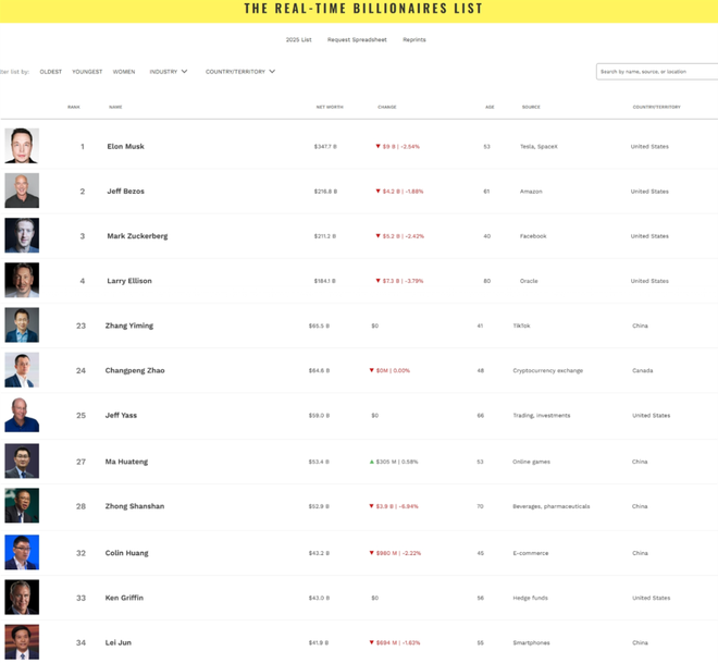 而福布斯实时富豪榜显示, 张一鸣身家高达655亿美元,全球排第23位。