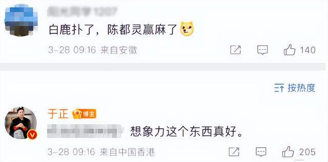 此外,有网友称白鹿新剧《北上》扑了。于正则在评论区回复道:想象力这个东西真好。