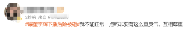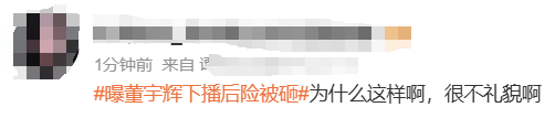 3月27日,有网友发视频称,与辉同行云南行期间,董宇辉在下播后欲离开时,现场有观众向其扔东西,差点砸中董宇辉。