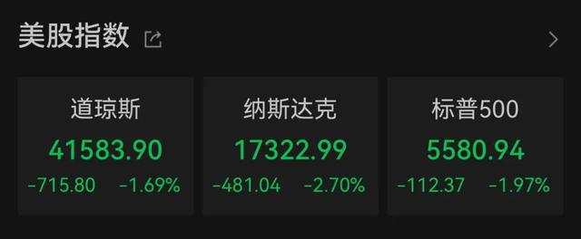美国经济警报频现,美股三大指数全线重挫。上周五标普500指数跌1.97%,纳斯达克综合指数跌2.7%,道琼斯工业平均指数跌1.69%。从一周表现来看,标普500指数跌1.53%,纳指跌2.59%,道指跌0.96%。