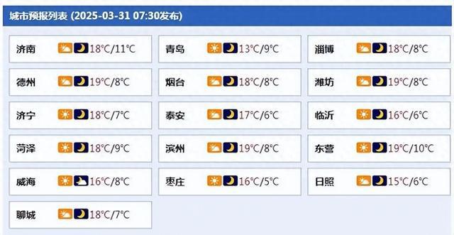 最高气温:鲁中山区和半岛内陆地区14℃左右,沿海地区11℃左右,其他地区18℃左右。