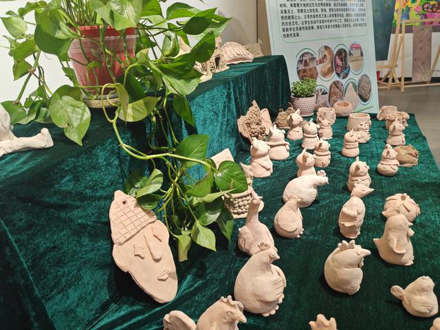 据悉,此次泥染作品展,莲花街小学除了泥染作品还展览了大量的陶艺作品,作品有传统器型、创意造型、陶人等等,下一步将进行上色,将其制作成彩陶作品。