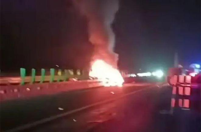 网传信息显示,该起事故系汽车撞护栏后自燃。