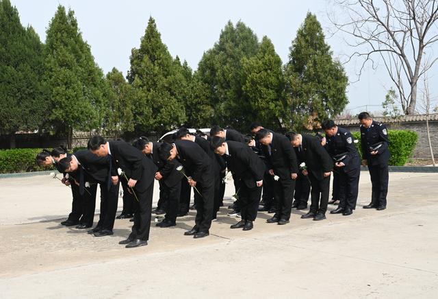 清风拂松柏,浩气贯长虹。在庄严肃穆的烈士纪念碑前,干警们整齐列队,静默肃立。鞠躬、默哀、敬献鲜花、绕碑瞻仰……干警们以最崇高的礼节向长眠于此的革命英烈表达深切缅怀。“这些镌刻在碑上的名字,曾是一个个鲜活的生命,他们用鲜血换来了今天的山河无恙。”青年干警轻抚碑文,感慨万千。