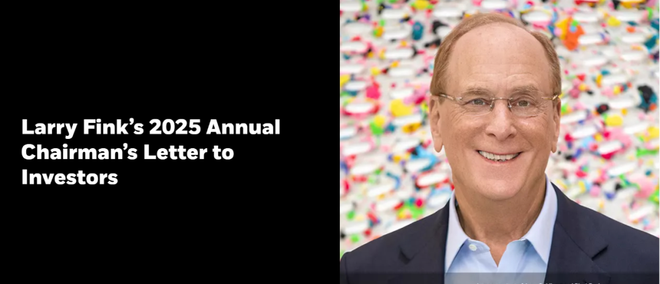当地时间周一上午,全球最大 资产管理公司贝莱德发布董事长劳伦斯·芬克(Larry Fink) 2025年致投资者函。