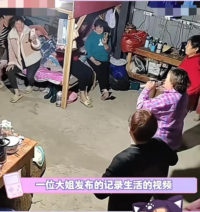 原来,这笑容背后藏着底层劳动妇女的艰难生活。她们几十个人挤在一间临时搭建的铁皮房里,睡的是木板大通铺。房间里灯光昏暗,桌上摆满了用塑料袋装着的碗筷。天刚蒙蒙亮,她们就得简单吃口早饭,然后赶忙去采茶,这一去就是一整天,直到天色渐暗才拖着疲惫的身体回到住处。晚上回来,她们的晚饭也不过是简单的素白面和馒头。而晚上唯一的娱乐,就是姐妹们聚在一起互相逗乐,有人唱歌,有人表演戏曲,还有人扮丑角逗大家开心。她们大多是年龄相仿的中老年女性,在这枯燥又辛苦的打工日子里,这些小小的活动,成了彼此生活里的一抹亮色。