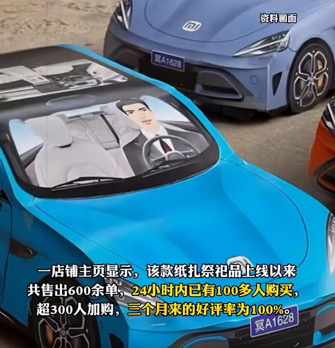 清明节期间,有网友爆料,说市面上居然出现了“纸扎版小米su7”。嘿,你还别不信,这纸扎车做得可像模像样了,外形、颜色,连天窗、轮胎、车标,甚至车牌号都一应俱全。尺寸是46厘米×18厘米×12厘米,价格还挺亲民,11元到30元不等。这价格一出来,好多现实中买不起豪车的人,想着先让地下的先人过把豪车瘾,于是纷纷下单。在某电商平台上,这款纸扎车一上线就卖出600多单,24小时内就有100多人购买,近三个月的好评率居然是100%。