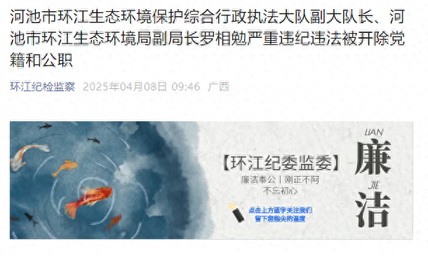 甘被拉拢腐蚀!河池市环江生态环境局副局长罗相勉被“双开”