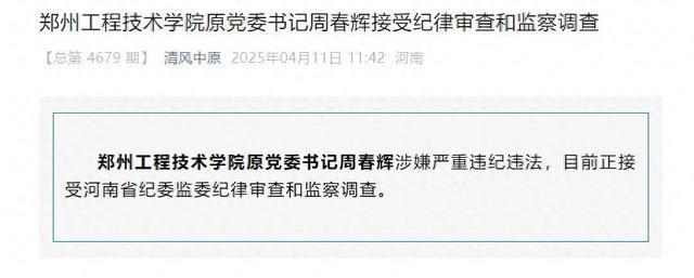 涉嫌严重违纪违法!郑州工程技术学院原党委书记周春辉被查 访客 2025-04-11 308 抢沙发 默认 据清风中原消息:郑州工程技术学院原党委书记周春辉涉嫌严重违纪违法,目前正接受河南省纪委监委纪律审查和监察调查。 标签: 省纪委 中原 海报 阅读 QQ 分享 微博分享 微信分享 分享 上一篇海阳科技IPO:业绩波动引担忧,研发短板如何补齐? 下一篇54岁古天乐,突传消息! 海阳科技IPO:业绩波动引担忧,研发短板如何补齐?上一篇 54岁古天乐,突传消息!下一篇 相关推荐 省纪委中原 13名校领导凑6千元请学生共享杀猪宴盛宴 2026-01-13 新疆喀纳斯景区车祸谣言揭秘 2026-01-13 女生溜冰高手,破纪录夺大鹅冰箱奖励! 2026-01-13 万家基金管理有限公司,专业投资管理的领航者 2026-01-13 打击倒卖死亡证明行动,让黑产无处藏身 2026-01-13 年关大促销!年轻人抢购库存车享3.9折优惠 2026-01-13 圣龙股份股票行情分析 2026-01-13 茅台市值,探究其市场价值之巅 2026-01-13 发表评论取消回复 快捷回复: 评论列表 (暂无评论,308人围观)参与讨论 还没有评论,来说两句吧...