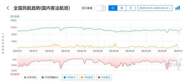 另外,潮新闻记者从飞常准获悉,截至4月12日12:00,受极端大风等恶劣天气影响,目前国内航线已取消航班3200余架次,已是今年以来航班取消的最高值。
