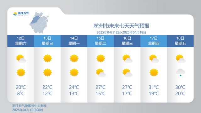 杭州下周一起,气温便会迅速回升,最高气温又将朝着30℃一路攀升。