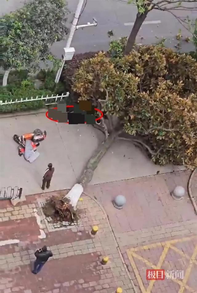 据极目新闻此前报道,4月12日,一段网传视频显示一棵大树倒在马路边,砸中一人。被砸者受伤无法动弹。