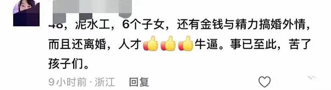 还有网友觉得很不可思议,“这样式的还有情人,去哪说理去?”确实,两个人都有家庭,还有那么多孩子,不好好经营自己的家庭,却在外面搞婚外情,实在是不应该。也有网友说“都是有家庭的人,外面的人我都不带搭理的,人家没有目的,凭啥接近你”,这话真是说到点子上了,外面的人对你好,大多都是有目的的,尤其是已经有家庭的人,更应该和外面的人保持距离。