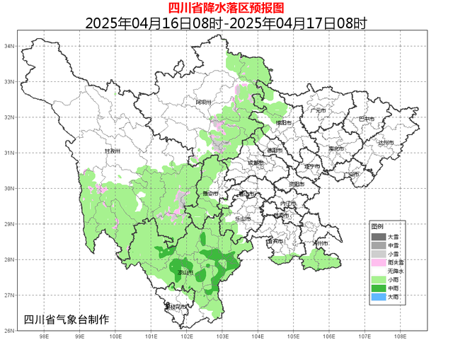 16日白天到晚上:盆地大部多云间晴,西部南部山区有分散阵雨;阿坝州东部、甘孜州南部东部和凉山州大部多云间阴有阵雨(雪),局地中雨,川西高原其余地方和攀枝花市多云间晴。