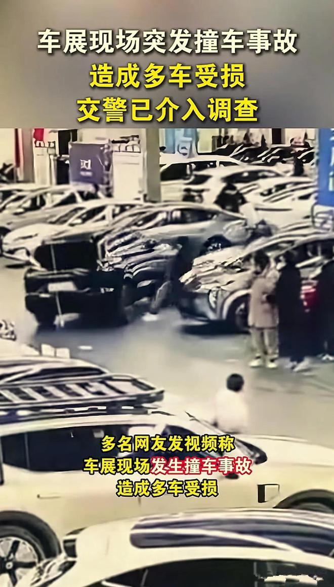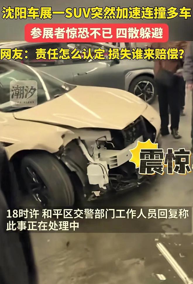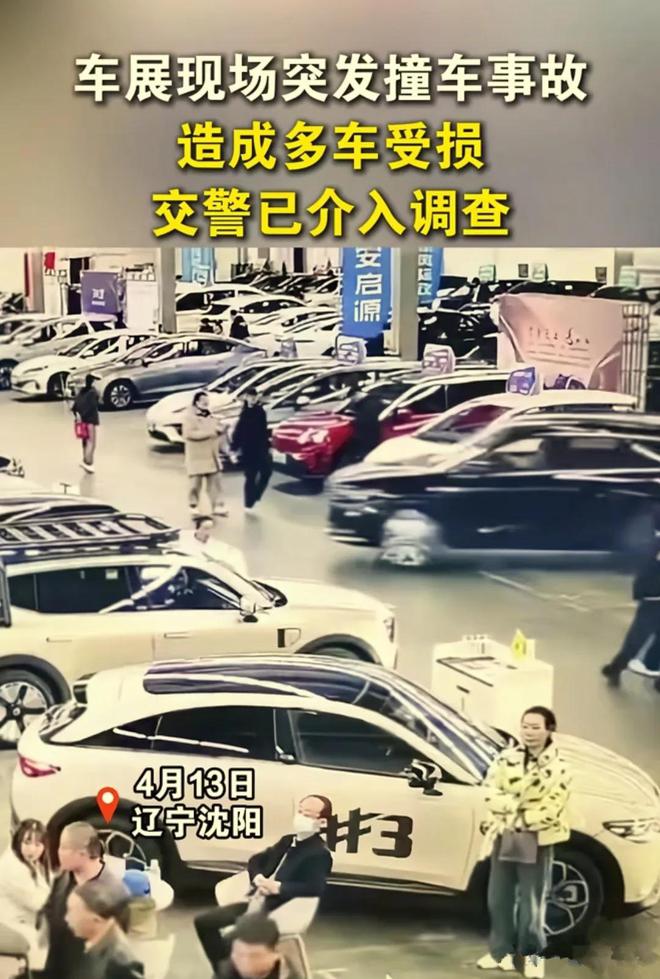 沈阳车展,发生严重撞车事故,有多辆车子受损,现场画面曝光
