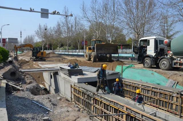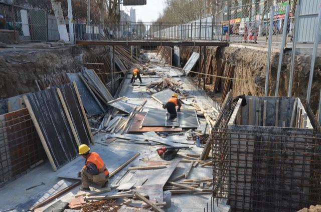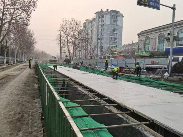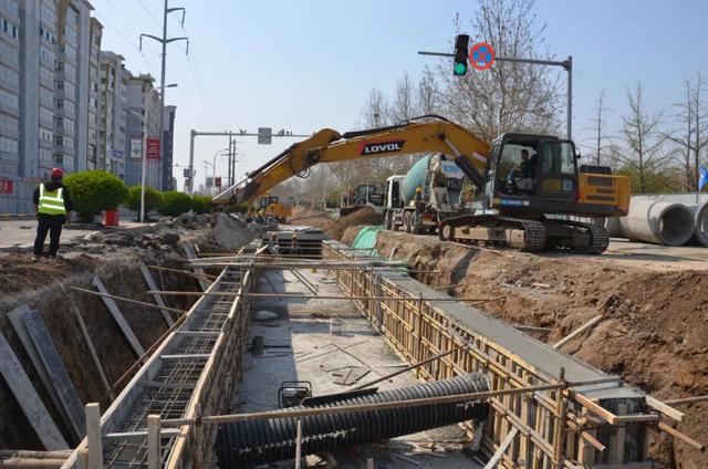 目前,雨水方沟、污水管道敷设已完成过半,完成的方沟正进行回填作业,部分路段已进入道路施工阶段。南京路至重庆路段道路施工完成后,施工将转移至博发市场至北京路段,预计整个工程将于6月30日前建设完成。
