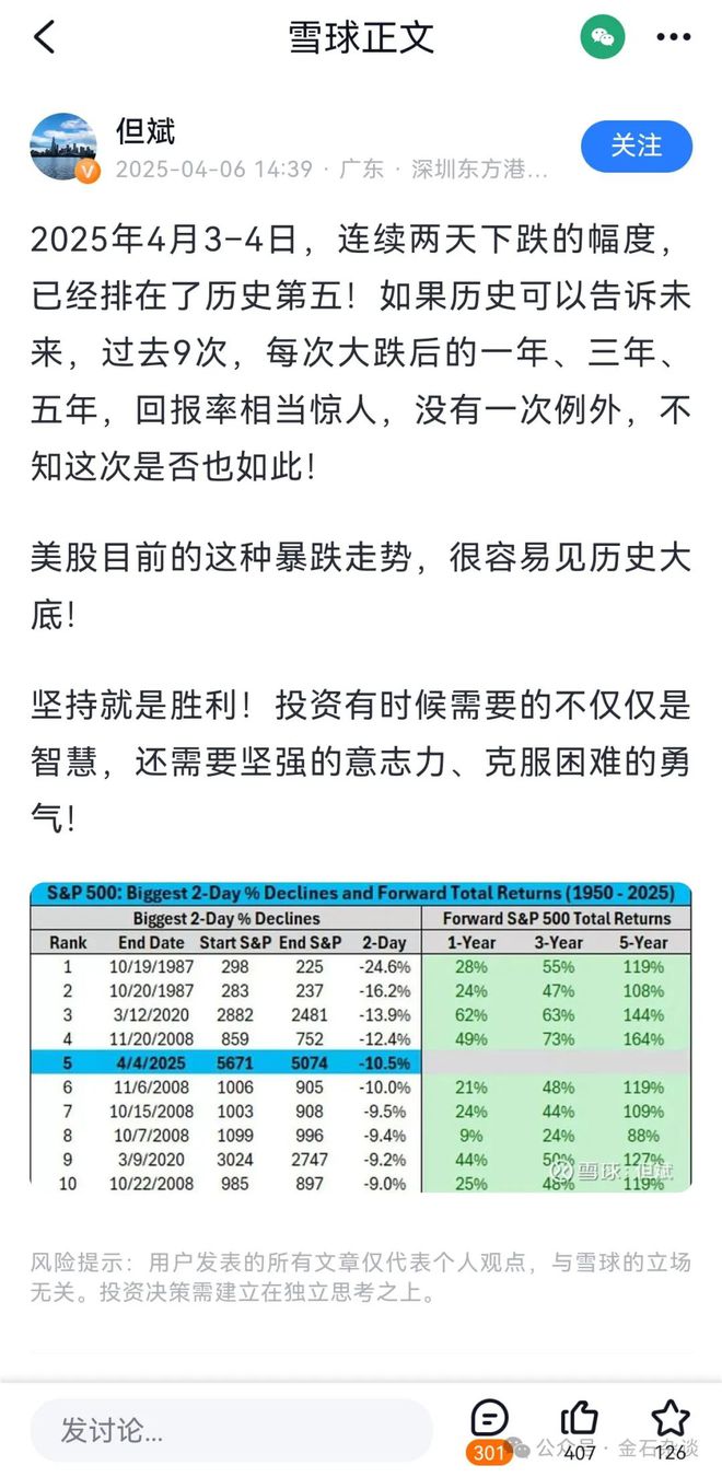 倒数第一的则是重仓美股、一季度偏爱英伟达、特斯拉等七朵金花的但斌,去年10月港股暴涨时高呼套牢一辈子,目前恒科已经突破去年9月新高;在美股近期暴跌后,则高呼历史大底,一次报复性反弹就高呼“充满历史感”。