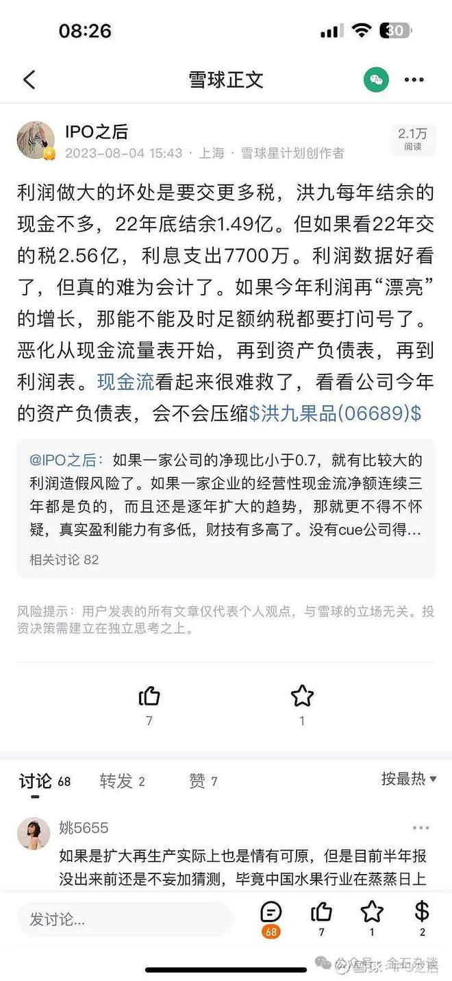 有股民表示,水果、蔬菜等农产品行业是虚开发票的高发领域,关键零成本。如果说百亿营收虚开三五亿不容易被发现,那你说洪九果品150亿左右的应收多少来自虚开发票?