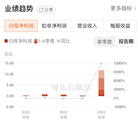 近日,正丹股份发布2024年业绩报告,公司实现营收34.8亿元,同比增长126.31%;归母净利润11.9亿元,同比增长11949.39%;扣非归母净利润11.84亿元,同比增长25313.81%。三项业绩指标均创公司历史新高。