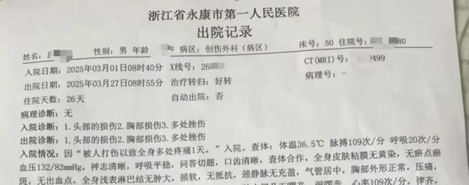 事情发生在吕先生去镇上咨询老房拆建事宜的那天。他开车回家路上,突然遇到副镇长王雨果带着几个工作人员拦在面前。还没等他反应过来,几个人就强行把他拖下车,抢走了手机和车钥匙。吕先生回忆说,当时对方一句话都没说清楚,上来就推搡,接着五六个人围着他连续打了十几拳,拳头雨点般落在头上、脸上,他只能抱着头蜷缩在地上,嘴里很快尝到了血腥味。打了一阵后,他们把吕先生拉上车,说是“去镇里说清楚”。路上吕先生吓得直冒冷汗,借口要上厕所才趁机逃脱,一路跌跌撞撞跑回了家。当晚他就觉得头晕恶心,赶紧去了永康市第一人民医院,诊断结果是头部、胸部损伤,身上多处挫伤,这一住就是大半个月。