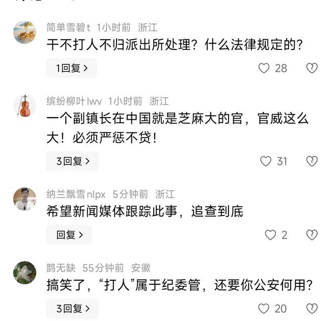 还有不少评论直指基层治理的痛点:“有些干部把‘为人民服务’变成‘管人民服软’,手里有点权力就嚣张,根本没把老百姓当回事。”“这次是打人,下次是不是敢更过分?不严惩的话,以后基层干部谁还把法律放眼里?”甚至有网友翻出旧闻:“之前某地村干部打人被轻描淡写处理,结果老百姓心寒,这种例子太多了,必须借这事立个规矩!”