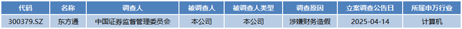 值得关注的是,还有一家公司因涉嫌财务造假而备受关注。4月14日,东方通(300379.SZ)发布公告称,公司因涉嫌定期报告等财务数据存在虚假记载,被中国证监会立案调查。东方通表示,如果后续经中国证监会行政处罚认定的事实,触及重大违法强制退市情形,公司股票将被实施重大违法强制退市。