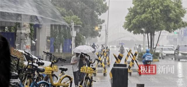接近8时许,雷雨暂停喘口气,很多市民赶紧快步送娃上学,“8时05分,我刚把娃送到幼儿园,一转身,就是暴雨。”市民徐女士只好在幼儿园门口等雨势减弱。