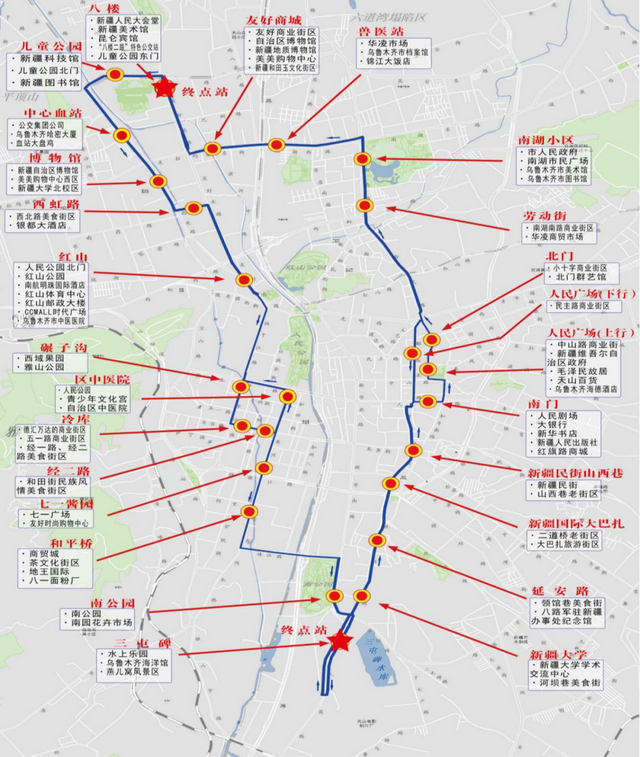 最新消息是,4月20日,乌鲁木齐市“2路印记 城市畅游专线”正式开通,线路以八楼、三屯碑为接驳点,覆盖全市主要旅游景点、历史文化街区、商业区,采取双向循环运行模式,是乌鲁木齐首条城市畅游专线。