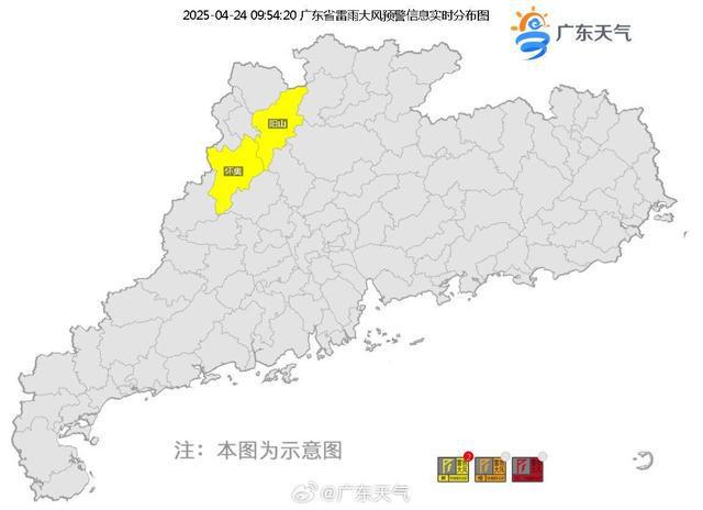 截至24日9时54分,连南、连州、阳山、乳源、英德、翁源、曲江、仁化暴雨黄色预警生效中,怀集、阳山雷雨大风黄色预警生效,出行注意交通安全,遇到积水路段尽量绕行,切勿强行涉水。