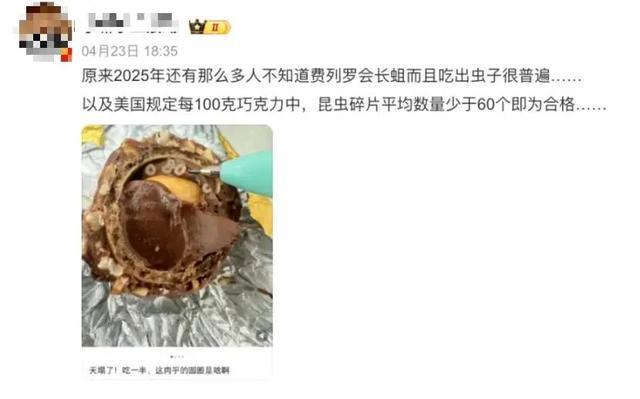 对此,有博主发帖称:原来2025年还有那么多人不知道费列罗会长蛆,而且吃出虫子很普遍……