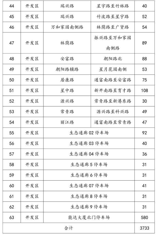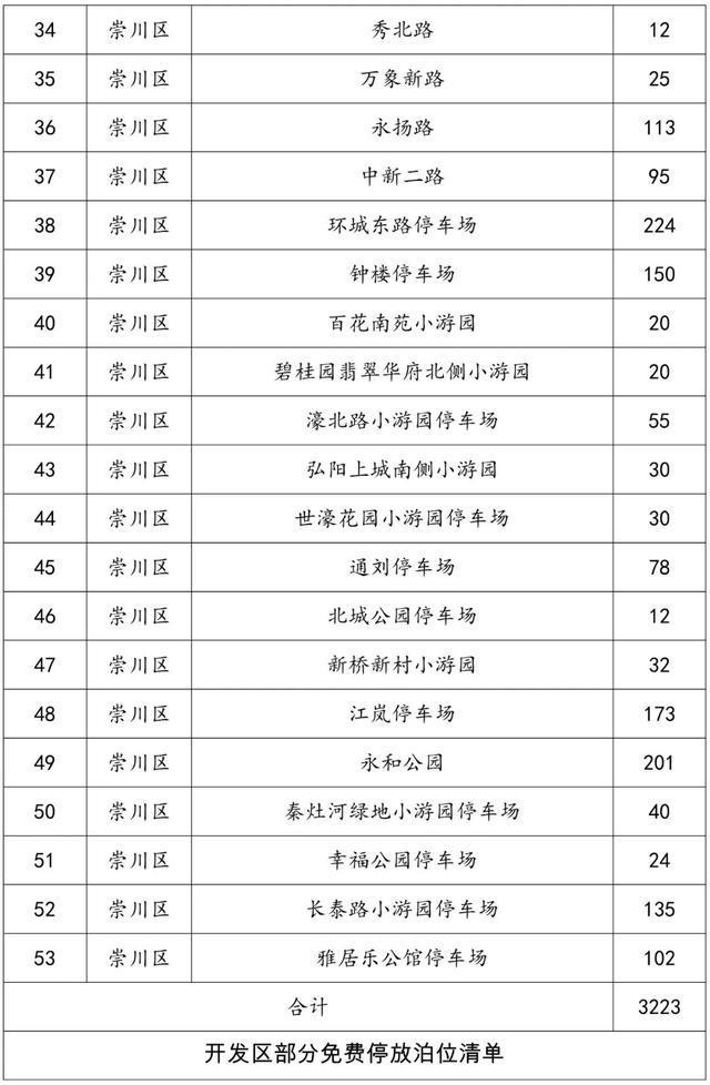 市区免费停车泊位清单