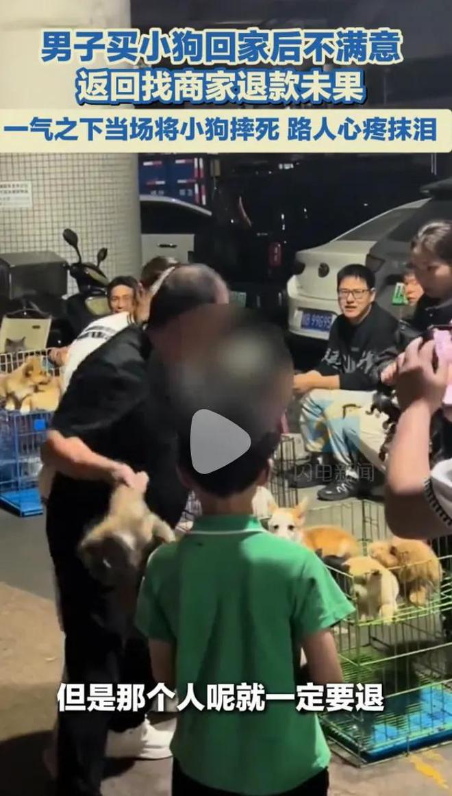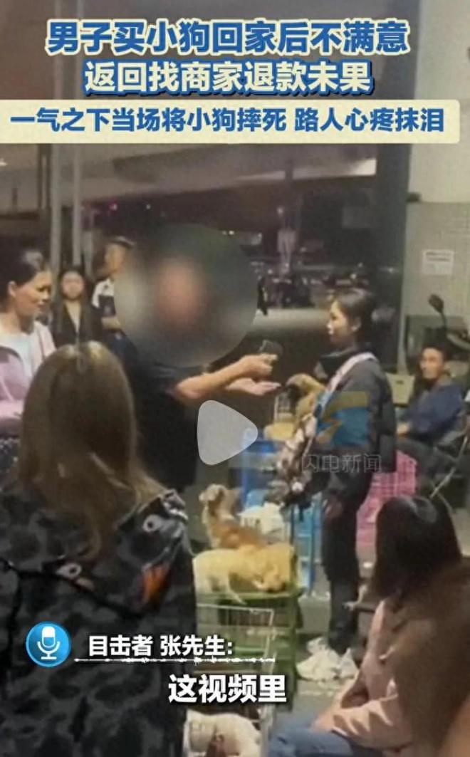 事情需要从4月26号那天说起。一个男子在狗市相中了一只小狗,当面交钱验货,看小狗活蹦乱跳的,就欢欢喜喜抱回了家。可没成想,没过多久他又拎着狗回来,说要退货。商贩觉得狗好好的,没啥毛病,自然不同意。两人就这么吵起来了,从“你这狗有病”到“你诚心找茬”,声音越来越大。周围人围过来看热闹时,只见男子突然单手掐住小狗的前爪,拎得高高的。小狗吓得直哆嗦,爪子乱蹬,发出细细的呜咽声。