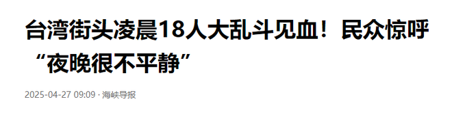 说句实在话,街头斗殴虽然常被归为“民间纠纷”,但背后折射的是社会治理的失效。当民众遇到问题第一反应不是找警察,而是抄起家伙解决,当司法公正屡屡被质疑,当街头暴力事件越来越频繁,所谓的“民主”“自由”不过是层遮羞布。有台湾网友私下说,现在晚上出门都得挑热闹的地方,生怕路过小巷子碰到“寻仇的”,这哪像个现代化社会该有的样子?