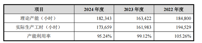 从招股书数据看,2022—2024年,汉邦科技的产能利用率分别为105.26%、99.12%及95.24%。从现存的募资项目来看,公司新增的产能能否消化是一个问题。