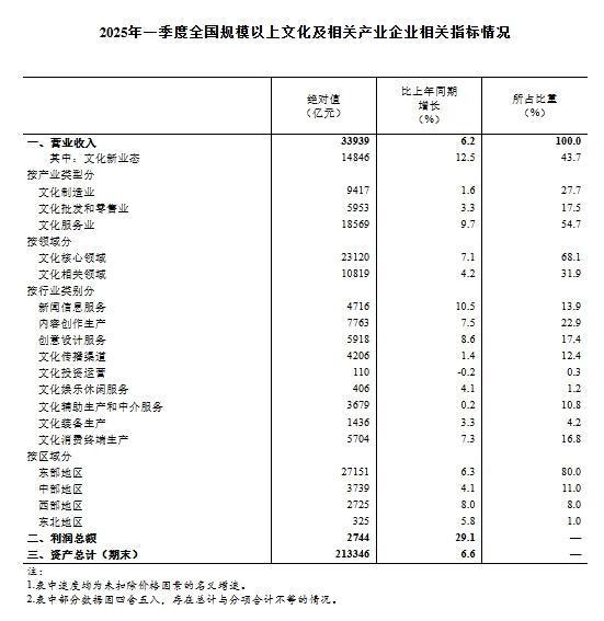 2025年一季度全国规模以上文化及相关产业企业营业收入增长6.2%