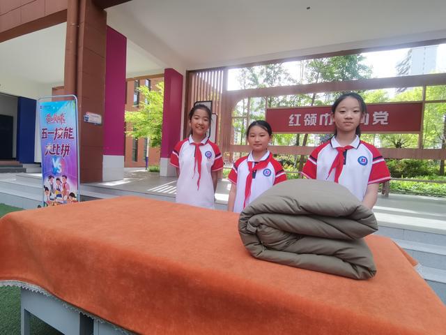 团体赛环节聚焦合作与默契。二年级“蔬菜、种子认识”比赛中,三人小组围桌而坐,快速辨认10种蔬菜与种子并填写名称,默契配合中积累知识;三年级“剥大葱”比赛考验速度与质量,选手们手法利落,剥出的大葱干净整齐,团队累计数量不断刷新;五年级“套被罩、叠被子”项目堪称“劳动协作典范”,三人分工明确——抖被罩、套被角、叠被子,动作连贯如行云流水,最短用时团队赢得阵阵掌声。现场欢呼声、加油声此起彼伏,劳动的热情感染着每一个人。