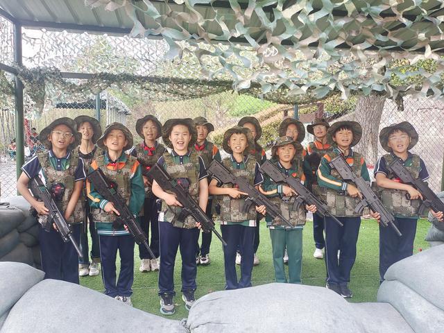在济源市示范性综合实践中心,五年级学生身着迷彩服,手持仿真训练装备,在模拟战场中沉浸式体验军事训练,感悟责任担当;戴上VR设备,“穿越”浩瀚宇宙,探秘航天科技前沿;亲手搭建黄河流域模型,3D打印“歼-20”战机模型,通过科技手段领略祖国山河壮丽,激发保家卫国豪情;在现场救护、搭建帐篷、定向越野等实践课程中,掌握野外生存技能,磨砺坚韧意志。