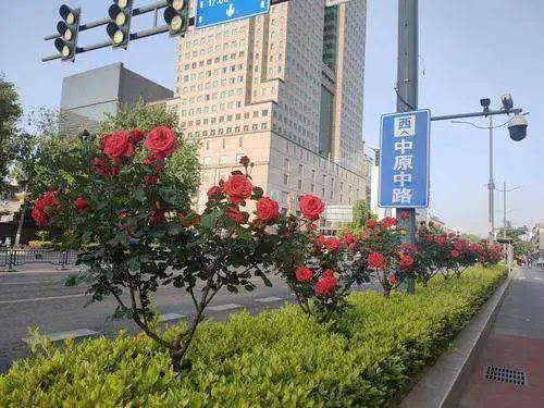 多条主要道路“一路繁花”:中州大道从北四环到机场高速,中分带中密植的粉色丰花月季形成一条绵延不断的粉色花带。一路向南,机场高速段中分带怒放的月季也是美得炫目,间隔种植的树状月季红艳一片,搭配粉、黄等颜色,花量大色艳,令人见之精神振奋;中原路(大学路—西四环),道路两侧机动车与非机动车隔离花坛内,每隔一二十米就有一簇树状月季,每簇近十株,以红、粉色系大花月季为主,最大的一朵月季有25厘米左右,百花路以西月季多为单株成行栽植,花开似锦,形成一道亮丽的风景线。可赏月季的道路还有嵩山北路南水北调桥、长江路与连云路交叉口、众意西路等道路等。