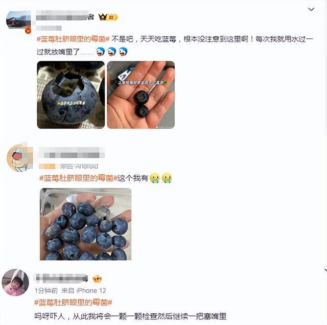 网友:“原来蓝莓这个地方这么脏!”“难怪蓝莓通便…合着我是吃坏肚子了啊” 有人还分享了用棉签清洗蓝莓的方法,吃之前一定要记得给蓝莓“掏耳朵”。