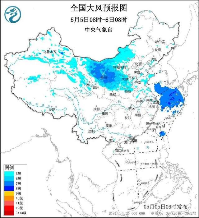 中央气象台5月5日6时继续发布大风蓝色预警:预计5月5日8时至6日8时,