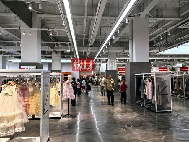 卖场主要在一栋商业体的一楼,楼上是仓库。不同于城市常见的商场,该卖场内部是开放式的服装展销区域,分为男装区、女装区和婴童区,各区附带有试衣间,只有几名导购人员。主要售卖各式服装,另有少量鞋、箱包、床上用品,以及眼镜。价签显示,男士短袖T恤、女士夏季连衣裙的价格基本在50元至300元区间,多数在100元左右,有的男装价格只有20多元。一名导购人员介绍称,卖场内的服装按尺码分类,顾客挑选到合适的拿去试衣,满意的话就拿着衣服到收银台结账。