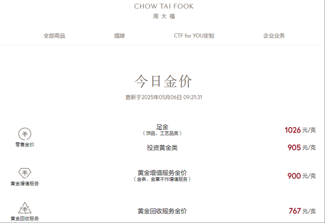 国内各品牌金饰价格也随之上扬,不少品牌克价再次突破千元。中新经纬6日查询发现,周大福金饰价格为1026元/克,较前一日上涨28元/克;周生生金饰价格为1023元/克,较前一日上涨23元/克;老庙黄金金饰价格为1022元/克,上涨31元/克。