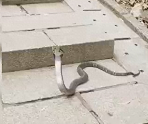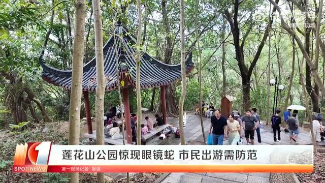 近日,深圳市民刘先生在莲花山公园山顶下山途中,突然发现一条1.2-1.5米长的眼镜蛇正在地面爬行,刘先生险些踩到蛇尾,受惊的眼镜蛇迅速抬头立起做出防御姿态,刘先生紧急躲避才化险为夷。事发地树木繁茂、临近凉亭,是不少市民常去的休闲区域。