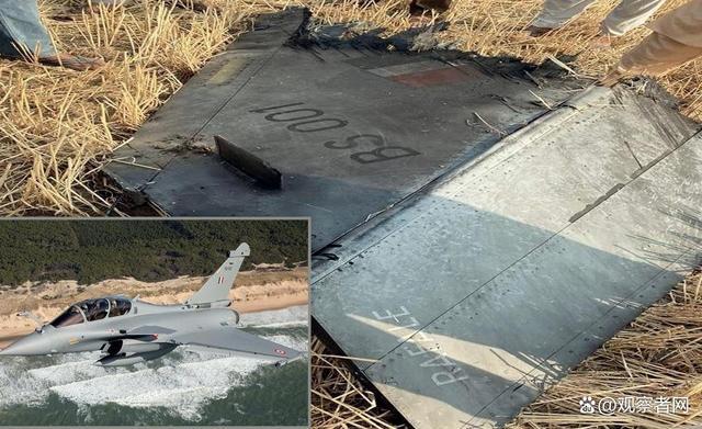 印军接收的首架编号为BS001的“阵风”战机,以及社交媒体流传的疑似该机垂尾残骸。 社交媒体