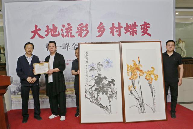 在当天举办的开幕式上,杨一峰还向河南省文联捐赠了两幅作品,李明向杨一峰颁发收藏证书。