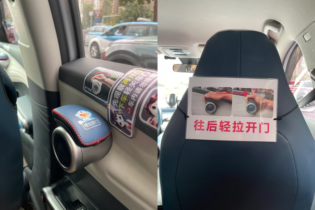 打车时发现师傅贴了很多提示语教乘客如何开车门