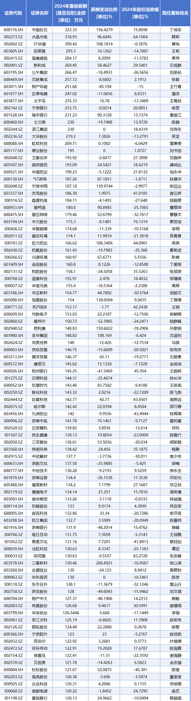 24浙股董秘薪酬排行榜最高年度薪酬323.33万元,最高涨幅1528.57%
